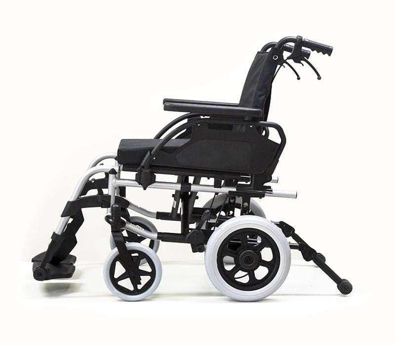 The Breezy BasiX 2 Transit Wheelchair comes with a lightweight aluminium frame. This standard manual wheelchair is highly efficient and easy to use.